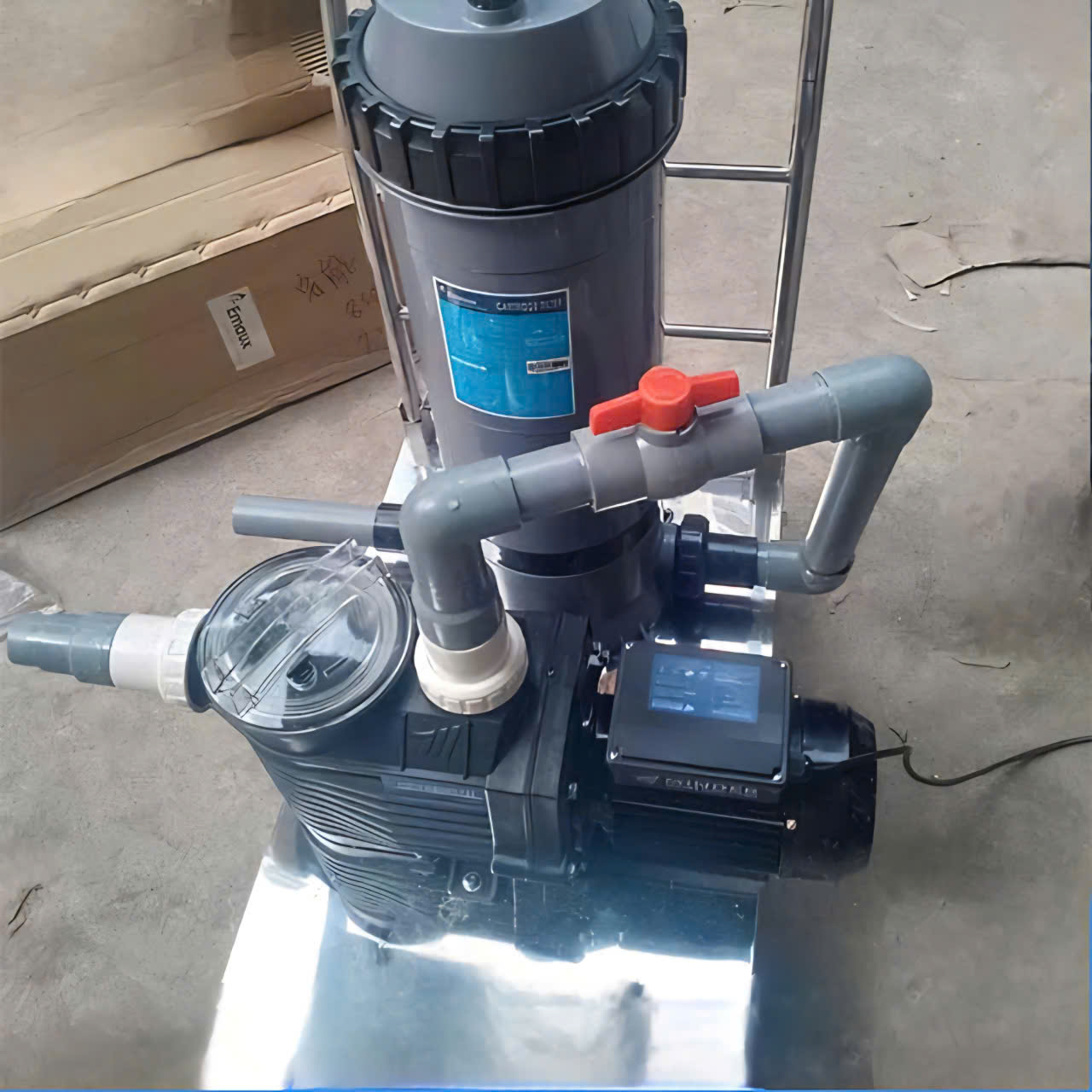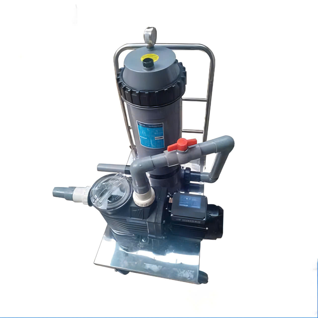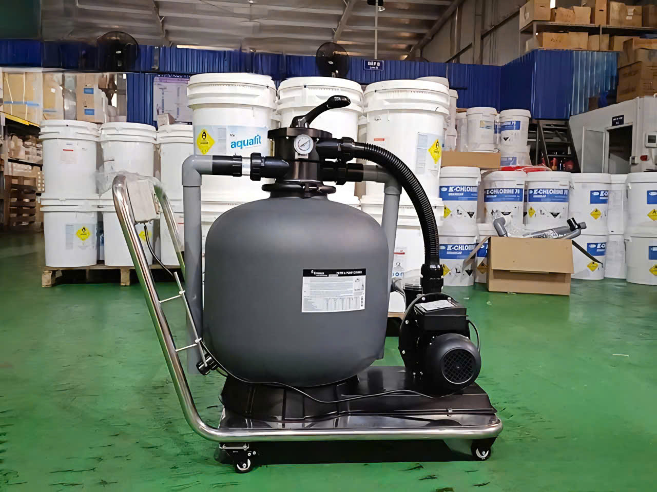 - Tích hợp 3 trong 1: Máy bơm lọc, xe đẩy, bình lọc Cartridge (hoặc bình lọc cát).