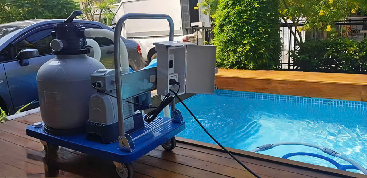 Bộ hút vệ sinh bể bơi di động 3 món bao gồm: máy bơm lọc, bình lọc (có thể lựa chọn giữa bình lọc Cartridge hoặc bình lọc cát) và xe đẩy kèm công tắc bật máy bơm. Các thành phần này phối hợp hiệu quả với nhau để giúp làm sạch nước trong bể bơi nhanh chóng và tiện lợi, mang lại sự tối ưu cho việc bảo dưỡng bể bơi.